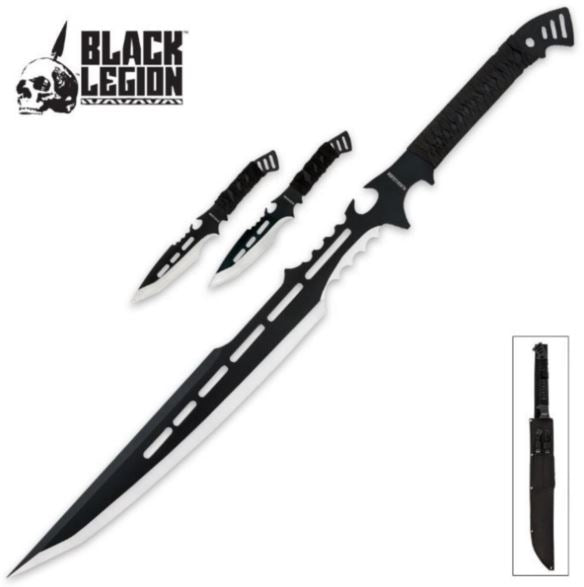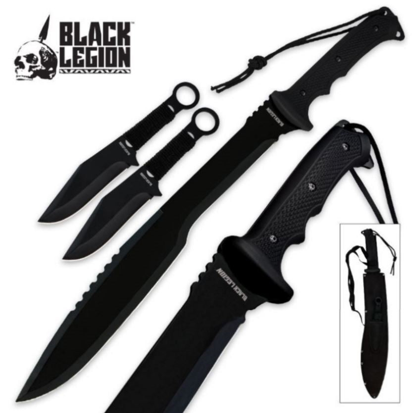 Black Legion 3-Piece Black Sword and Throwing Knife Set with Nylon Sheath