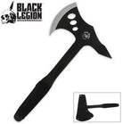 Crafted of one piece of cold, hard stainless steel, this throwing axe has a non-reflective black textured finish with cutout designs and the Black Legion etch. The nylon cord wrapped handle is comfortable and provides a sure grip. Measures 13 ½” overall. Includes nylon snap button sheath.