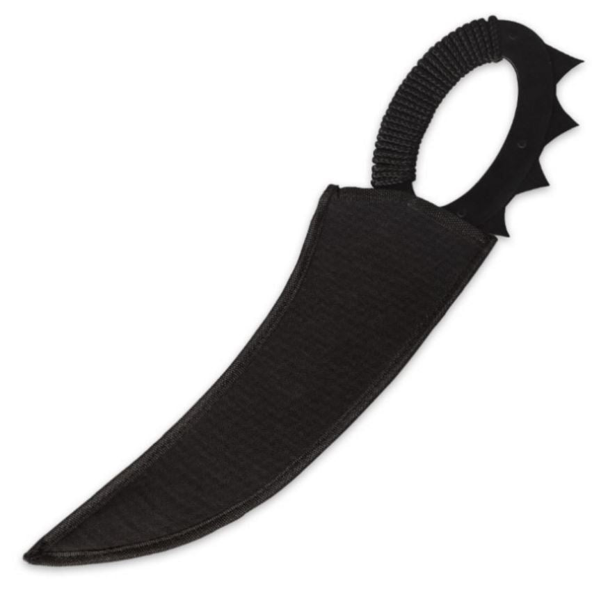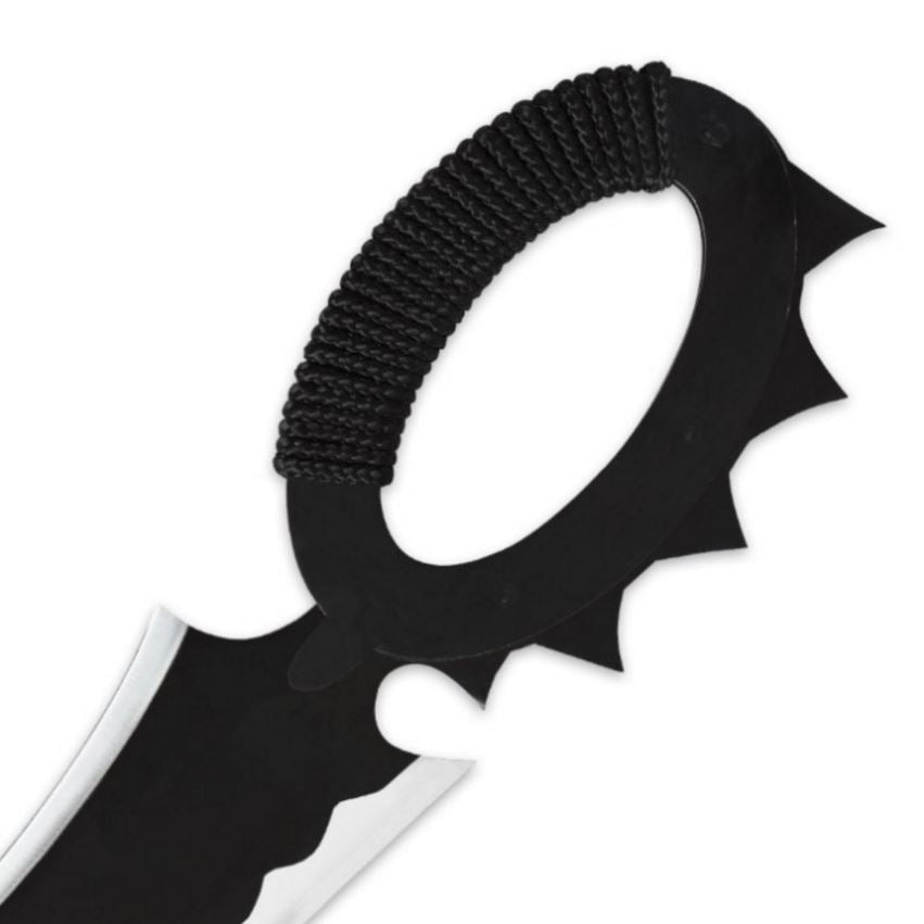 Inspired by the anime and manga series, Brave 10, the Sasuke Sarutobi Knife is an incredible reproduction of the weapon carried by the head of Sanada’s ninja squad. The black plated knife is made of strong carbon steel. The handle is wrapped with black rope and a black nylon sheath completes the package.