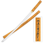 A sword of elegance and simplicity! Shirasaya (Japanese for "white scabbard") describes a katana without a guard or traditional handle wrappings. This design was used when the sword would not be wielded for some time and allowed for storage without fear of corrosive damage to the blade from the usual lacquered scabbard. Our shirasaya katana provides a sword that is minimalist in theme but still a striking example of Japanese sword craft.