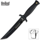 It's bigger and better than ever, featuring a razor-sharp stainless steel blade with a non-reflective anodized black coating, blood groove, and piercing tanto point. The injection-molded handle provides a secure, slip-resistant grip and a guard to protect your hand. The shoulder harness sheath allows you to carry this bad boy discreetly so you're ready to defend yourself at a moment's notice.