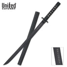 This battle ready sword offers a full tang black finish 25 1/8″ blade constructed from 420 stainless steel with a heavy blood groove design. Measuring 38 1/2″ overall, this sword’s hardwood handle offers a cast metal pommel and a wire wrapped grip. Includes hardwood leather wrapped sheath. United Cutlery, UC2521.