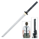 This sword offers full tang stainless steel construction and features a 21″ blade with a satin finish. The handle offers an ebony wood handle fitted with stainless steel rivets and guard. This sword includes a hardwood sheath that can be worn on the side or slung across the back. This item measures 33 1/2″ overall.