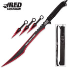 Red Guardian Ninja Sword and Kunai Throwing Knife Set with Sheath