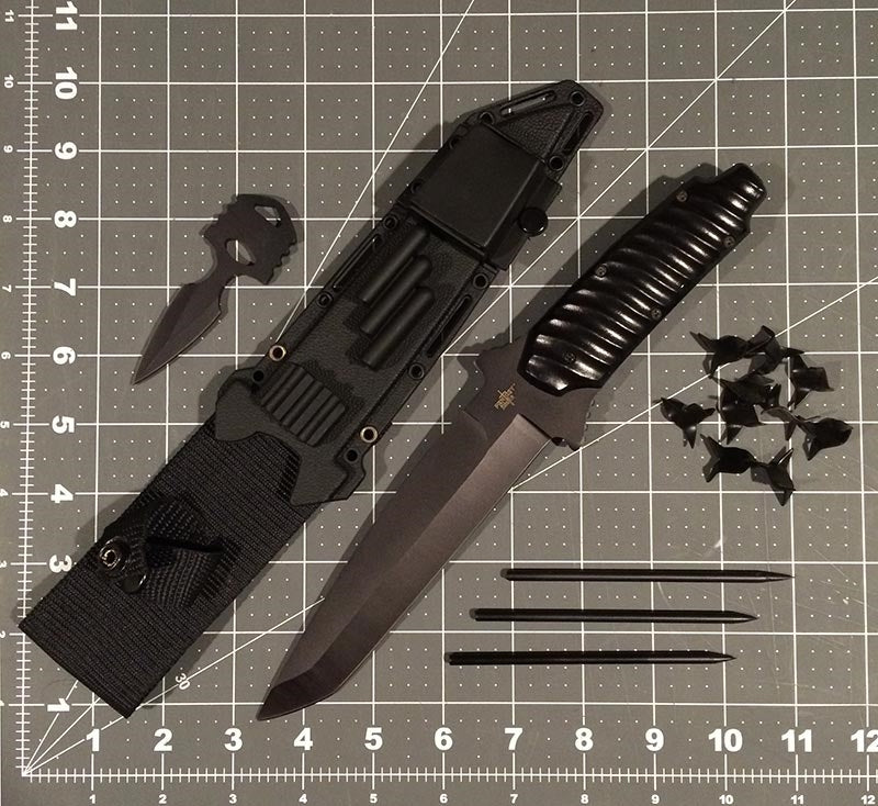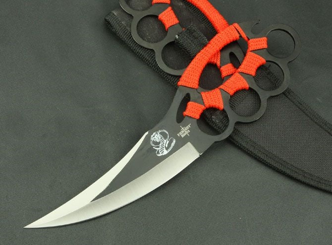 Fixed Blade Knuckle Guard Knife With Hidden Kunai