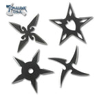 This throwing set offers four assorted throwing stars constructed from stainless steel with a black finish. Each throwing star measures 2 1/2″ in diameter. This set includes a nylon pouch for easy storage and carry.