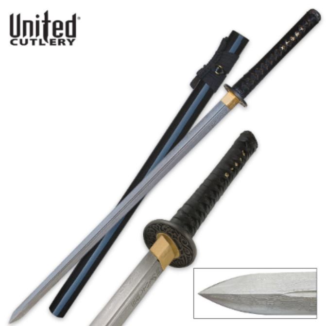 United Cutlery Black Ikazuchi Forged Damascus Katana