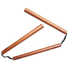 Three equal sticks measuring 14 inches long and 1-1/4 inch in diameter. Six sided wood sections are made from a strong, natural finished hardwood and strung together with a nylon cord.